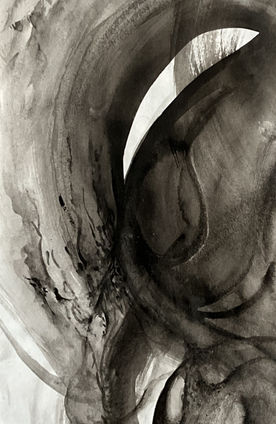 The figurative work called 'InkaWEmE' bearing traces of ancient wisdom, was created with black acrylic paint.
